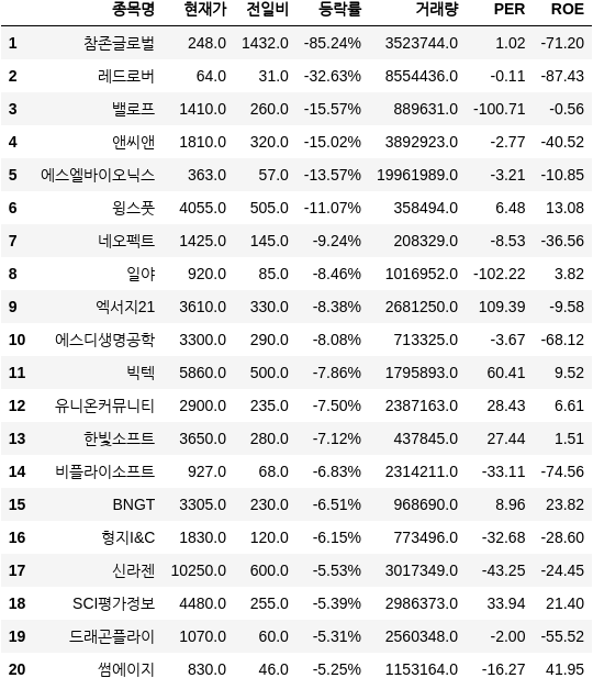 -[오늘의 급락주] 레드로버·BNGT·삼성스팩7호·코오롱우·삼성스팩4호 (4일 전)