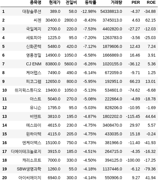 다만 래몽래인 주가는 전 거래일 대비 9.37% 하락한 3만4800원에, 피코그램 주가는 전 거래일 대비 9.93% 내린 1만3150원에 장을 마쳤다. 이외에 신풍제약우, KH 건설, 지엔원에너지, 대창솔루션 주가가 하락세를 보였다. 한편 투자경고종목은 정상적으로 급등한 종목을 의미하며, 투자자에게...